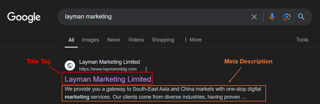 Meta Descriptions: Intended to be a short summary of the content found on the web page, its main objective is to let the search engine to ‘learn about’ the page content and to do it in an alluring manner.